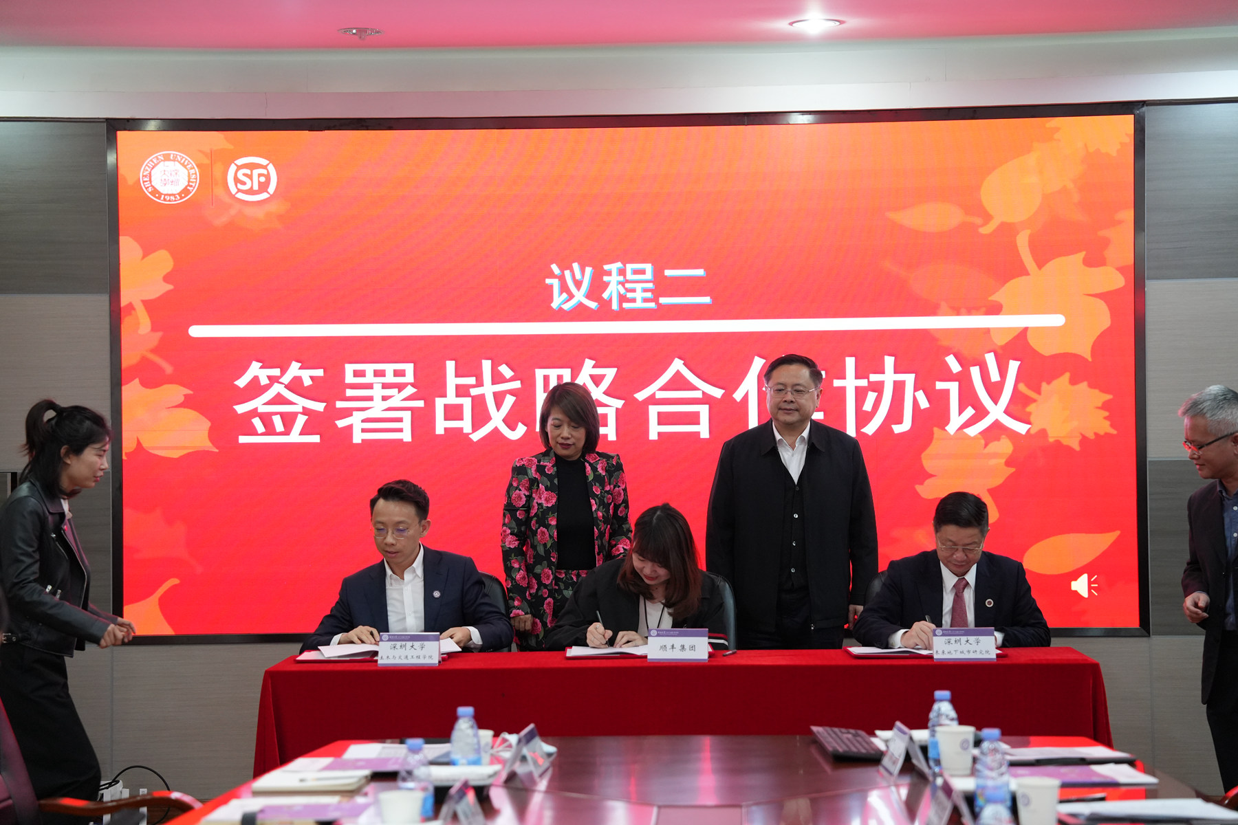 2022年12月7日下午,深圳大学土木与交通工程学院联合深圳大学未来地下城市研究院,同顺丰集团举行了战略合作框架协议签约仪式暨校企洽谈、研究生校外导师聘任及专场招聘。深圳大学参会成员有:校党委常委徐晨副校长,土木与交通工程学院院长、中国工程院陈湘生院士,院党委书记李伟文教授,龙武剑执行院长,隋莉莉副院长,邹亮副院长,杨磊副院长,包小华副院长,胡明伟教授,朱家松教授,李利孝院长助理等多位领导专家;顺丰集团参会成员有:助理CEO兼首席人力资源官王欣总裁、丰翼科技首席技术官姜明涛、营运规划副总裁侯继娜、人才发展副总裁陈璐、丰翼科技业务运营总监陆再政、招聘总监周文博、校园业务总监徐晨(Evan)、运营模式算法总监黄一潇、场地规划总监孙肖肖、人才发展副总监朱茜,顺丰集团高级算法产品经理林嘉欣等多位领导及技术专家。