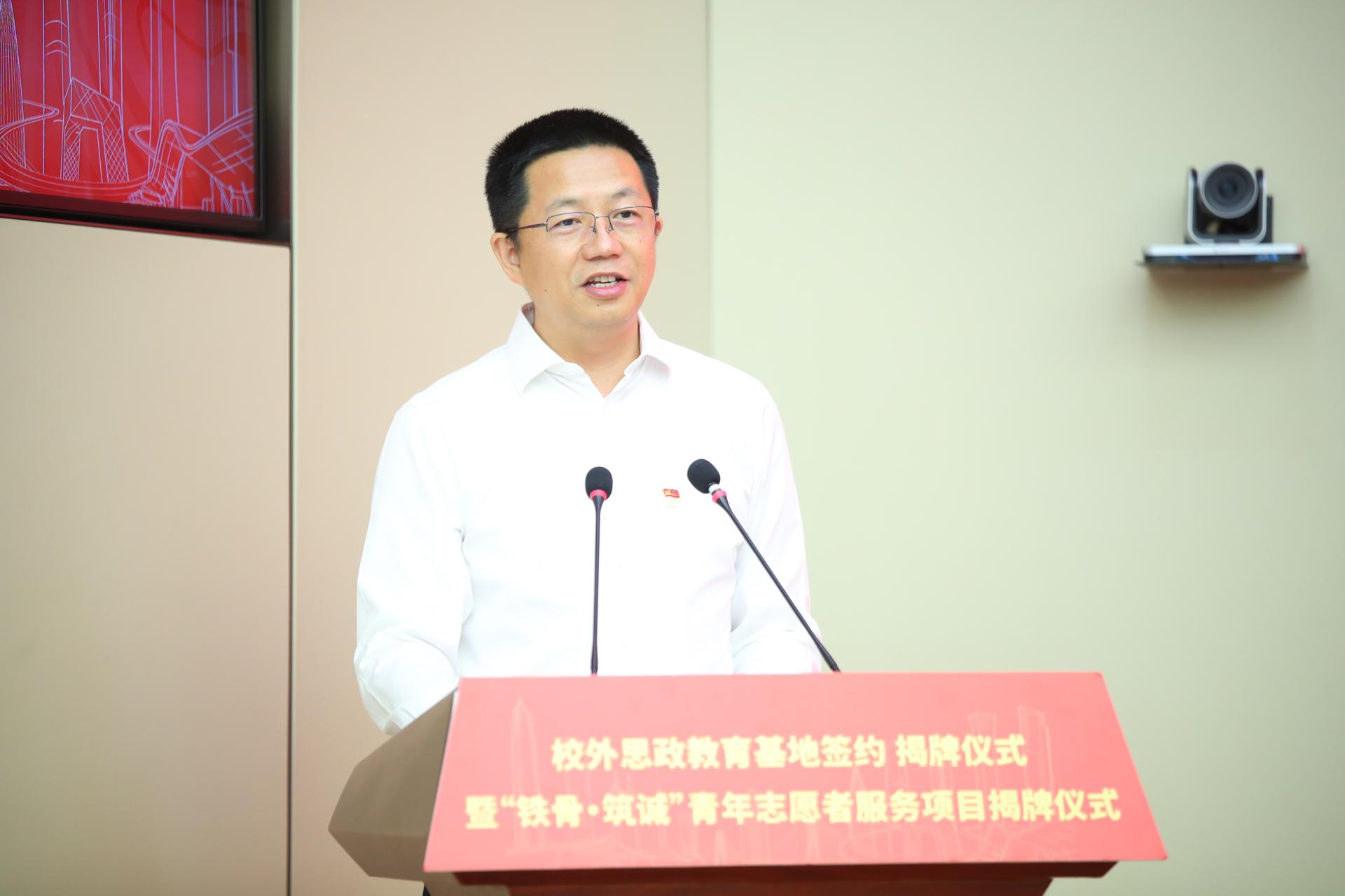 深圳大学副校长汪永成表示,深圳大学始终坚持将立德树人作为根本任务,始终坚持把思想政治教育贯穿教育教学全过程,与中建科工签约校外思政教育基地并开展“铁骨·筑诚”青年志愿服务项目对于深圳大学具有重要意义。希望通过深入的校企合作,进一步培养深大青年的社会责任感和公民意识。同时,期待校企双方能够不断提高合作水平,形成优势互补、互惠互利、相互促进、合作共赢的良好局面,携手为大湾区新时代建设、深圳“中国特色社会主义先行示范区”建设贡献力量。