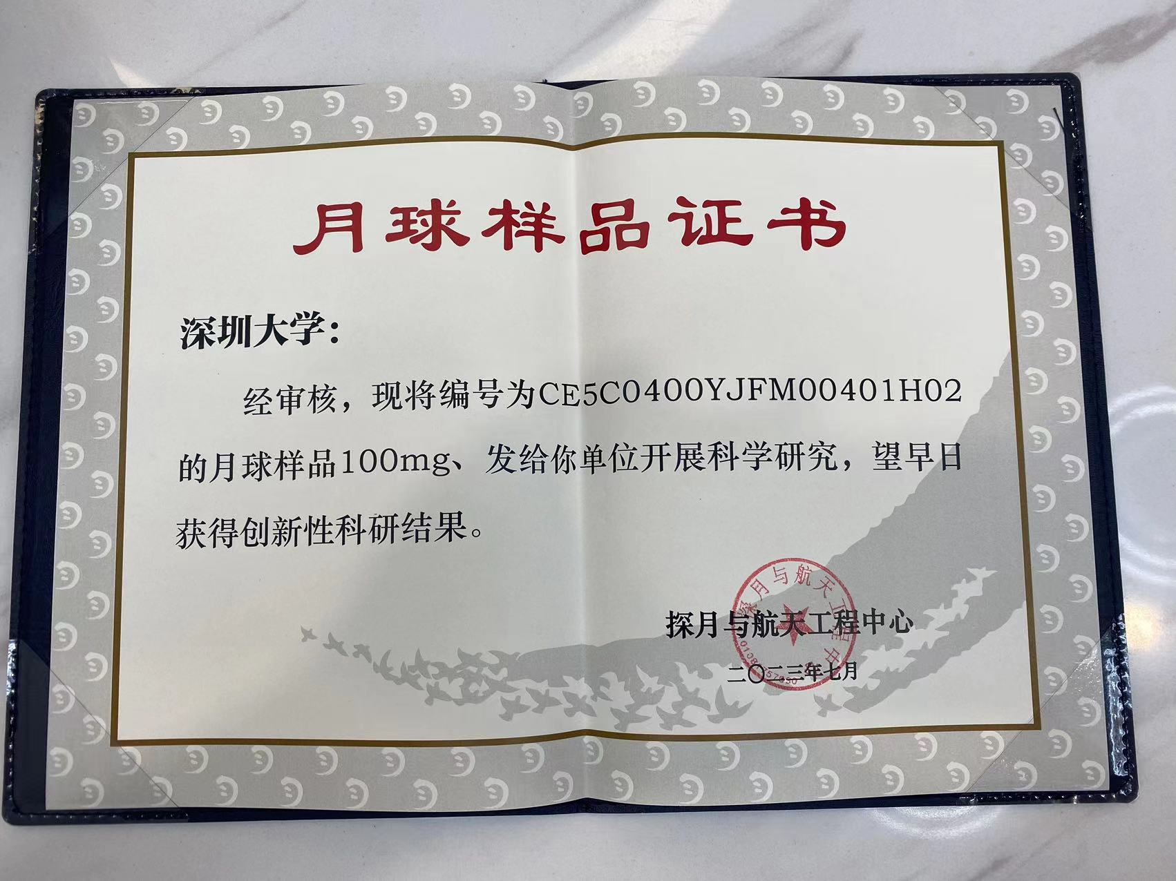 2023年6月27日,国家航天局探月与航天工程中心公布了第六批月球样品发放公告,我院谢和平院士成功获批100mg嫦娥五号月球样品,这也是深圳市高等院校、科研院所首次获批真实的月球样品。8月7日,谢和平院士作为月球样品使用责任人,代表使用单位深圳大学前往国家天文台领取了月球样品,现在这份弥足珍贵的月壤已经交到谢和平院士研究团队手中,这是深圳市第一次正式领取嫦娥五号月球样品。