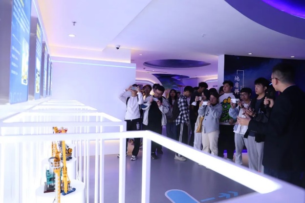 随后,在工作人员的带领下,深大学子分批次参观了工勘集团“党建文化”“岩土多元”“地质科普”“数字科技”四大展厅,同学们一路走、一路看,“零距离”、“面对面”地感受企业发展历程、实际项目案例以及科技创新等,这不仅让他们对行业发展及企业前景有最直接、最切身的体会,同时对土木工程的数字化、信息化、智能化发展前景有了更加深刻的认识。在参观过程中,学子们对工勘集团的专利工法、人才团队、岩土技术创新、数字科技研发等成果饶有兴趣,不时驻足查看,并与工作人员互动交流。