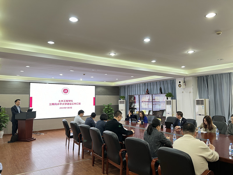 陈湘生院长首先对李霞主任一行的到来表示热烈欢迎,对发展规划部在2024年第一个工作日来学院调研表达衷心感谢;龙武剑执行院长就我院高水平大学二期建设情况和三期建设进度进行了介绍。