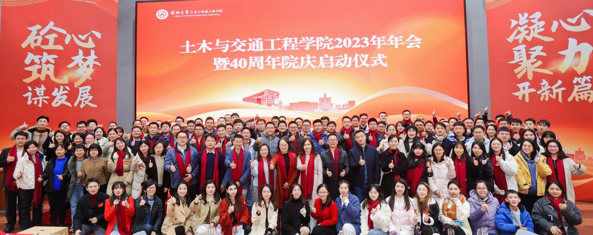 为总结成绩,擘画蓝图,2024年1月23日下午,深圳大学土木与交通工程学院在深圳大学粤海校区校友广场多功能厅举办2023年年会暨40周年院庆启动仪式,本次年会主题为“砼心筑梦谋发展,凝心聚力开新篇”。