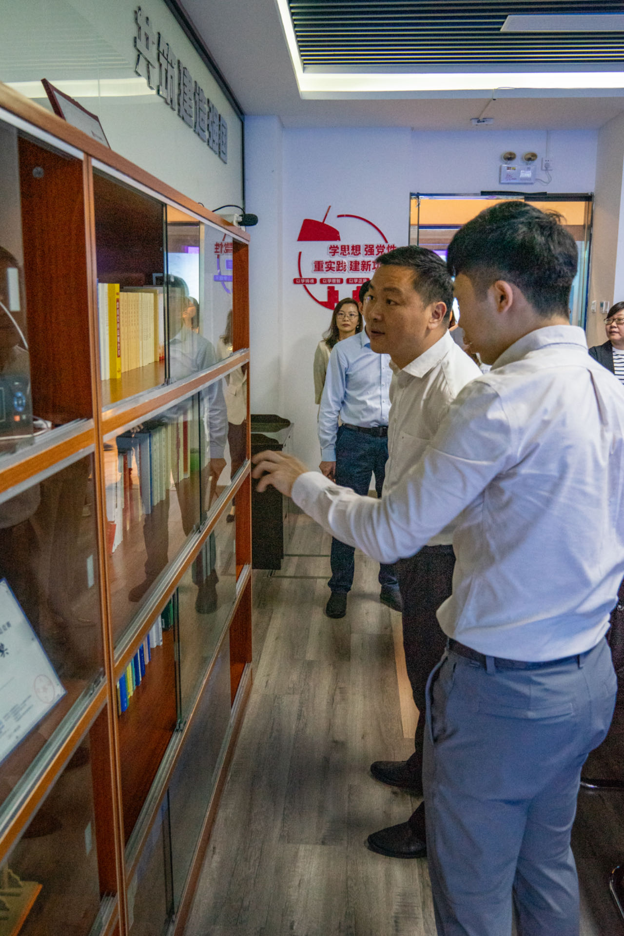 汇报结束后,吴报水书记一行参观了BIM实验室、工程管理科学系教工党支部党建阵地,吴报水书记对我院党建与实验室融合打造表示赞赏,并提出了进一步完善的意见建议。