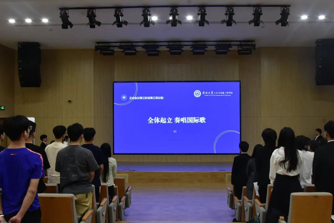 全体师生起立奏唱《国际歌》,深圳大学土木与交通工程学院第十次学生代表大会圆满结束。