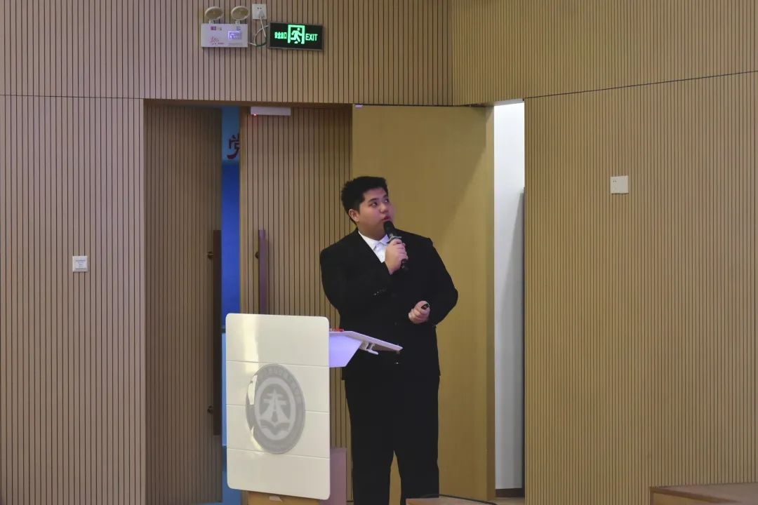 学生会委员会召集人金雨铖汇报第九届学生会委员会过去一年的工作情况。金雨铖同学主要从学生会委员会概况、工作内容、不足及展望三个方面进行总结汇报。