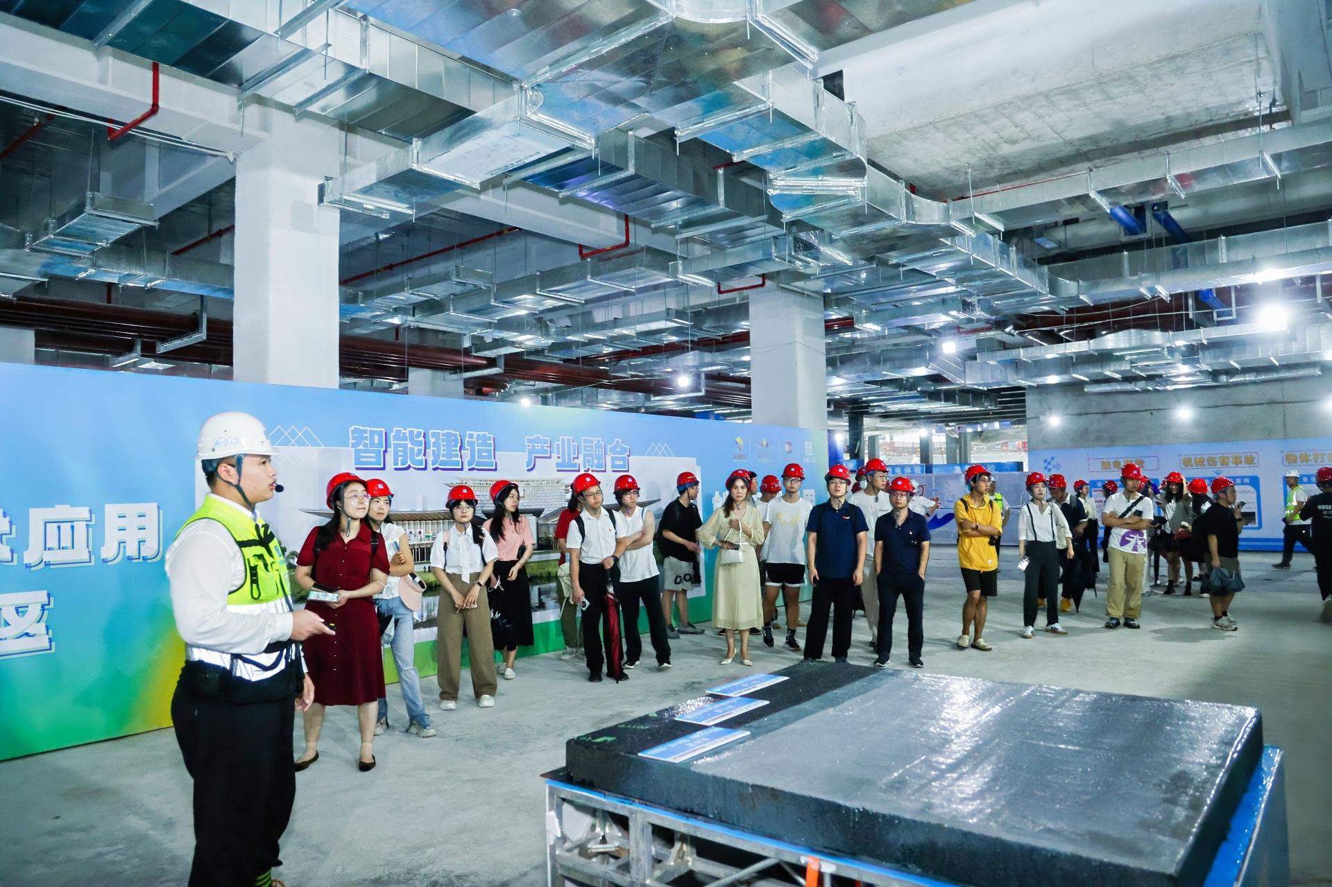 随后,观摩团在项目现场参观了包括一站式服务平台、智慧健康驿站、劳保用品展示等在内的多个功能区,深入了解了工程项目的智能化、安全化管理方法。工程师还特别介绍了项目中应用的12项自主创新及行业先进技术,如基坑支护工程的健康监测、数字化钢管混凝土柱顶升浇筑技术等,充分体现了智能建造与建筑工业化协同发展的主题。最后,观摩团参观了产学研校企合作专区,专区现场展示了深圳大学土木与交通工程学院与中建八局南方公司校企合作的成果以及学院的智能建造代表性示范技术。