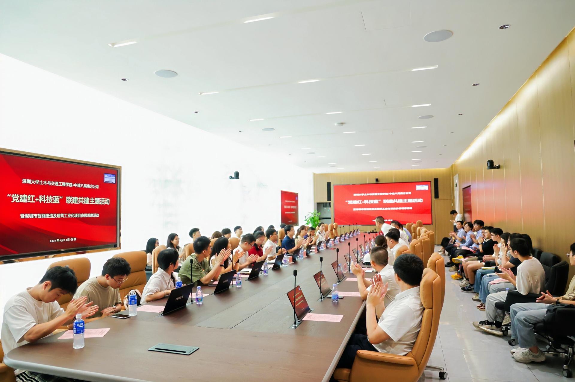2024年6月14日,深圳大学土木与交通工程学院与中建八局南方公司深圳分公司成功举办了校企“党建红+科技蓝”联建共建主题活动,本次活动在福田区香蜜湖街道中建八局深圳国际交流中心项目部开展,主要观摩了深圳市智能建造与建筑工业化协同发展系列项目。