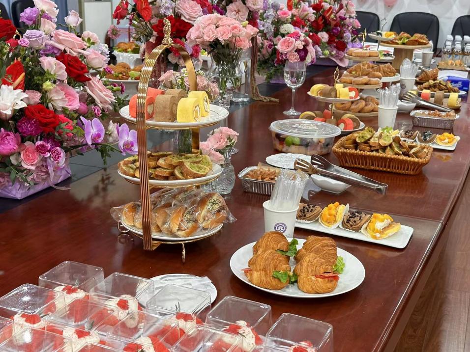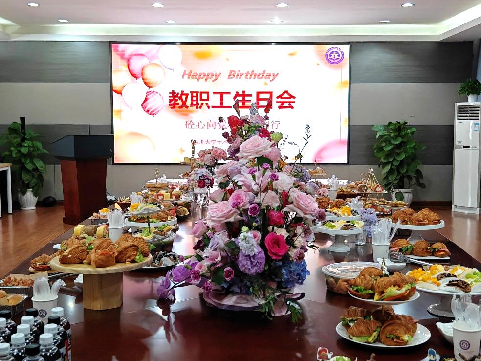 活动当天,负责活动策划的教师及学生助理对学院会议室进行了一番精心的装扮。生日主题的装饰品遍布每个角落,从悬挂的彩球到摆放的花束,从精致的甜点到新鲜的水果,每个细节都表达出学院的用心及创意。老师同学们共同营造出一个温馨而充满喜悦的空间,让每一位教师都能感受到这特别的生日氛围。