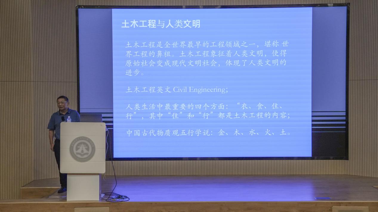 任伟新教授首先介绍了土木工程专业的定义及其培养目标,然后以桥梁结构为切入点,通过国内外的桥梁发展史来说明了土木工程与人类文明之间的互相促进的关系。紧接着,任伟新教授用生动形象的例子来说明土木工程学科是一门创造性艺术,而不是一门科学。最后结合文明的定义,任伟新教授引出了结构功能性与结构舒适性的两个概念,并由此分别阐述了结构的基本力学要素、以及桥梁美学等内容。