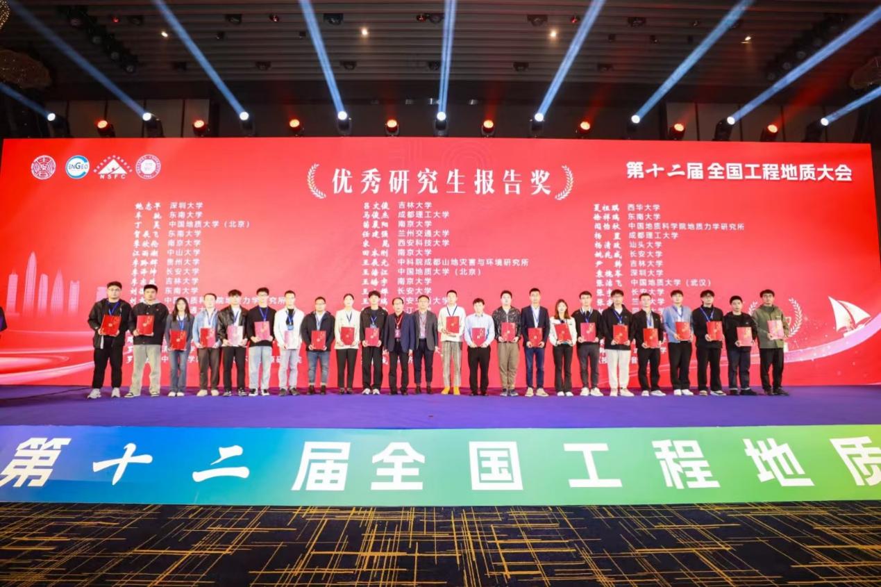 本次大会特别策划并举办了多达262场的研究生报告,为广大学子提供了一个展示研究成果和促进学术交流的宝贵平台。经过激烈角逐与严格评审,最终评选出50位优秀研究生报告奖得主,长安大学彭建兵院士与中国地质学会工程地质专业委员会副主任委员葛永刚研究员分别为获奖者进行颁奖。