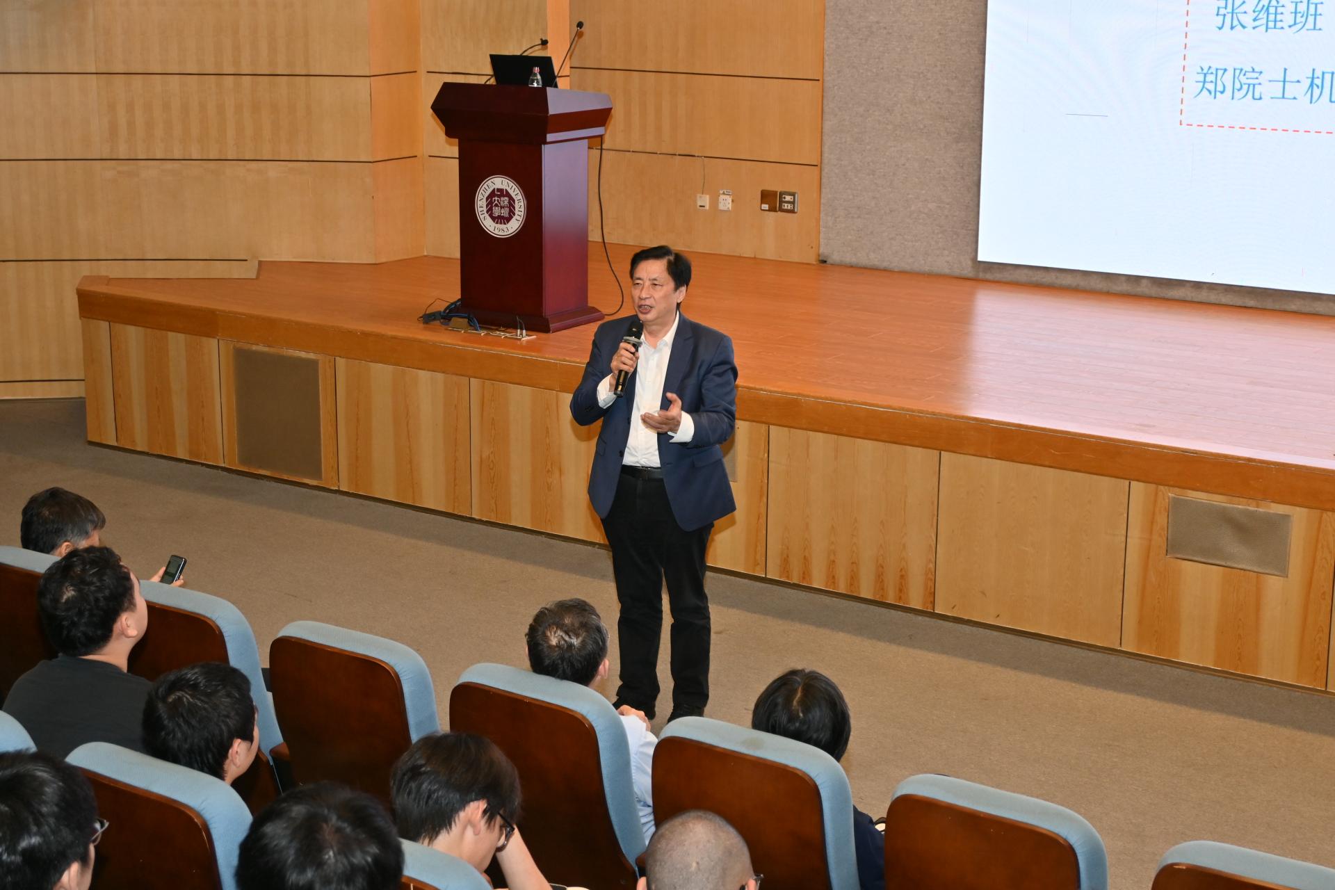 随后,零一学院创始人、著名力学家、中国科学院郑泉水院士致辞,首先表达了对谢院士邀请其团队一起参与深大数学力学创新班建设的感谢;并介绍了零一学院的创办历程、办学特色及已取得的成果等,旨在以重大创新挑战问题为牵引,实施“进阶研究-精深学习”的高度个性化教育。并表示将积极与谢院士团队展开更多的教育、人才培养、科研交流合作,未来将共享零一学院相关教学、科研师资、科研平台,共同为数学力学创新班的建设发展提供保障。