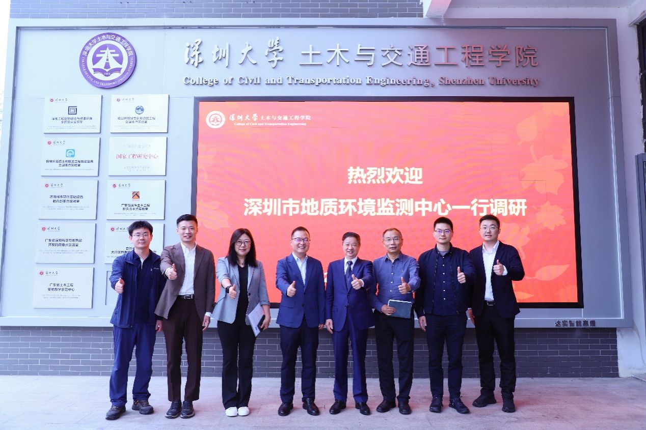 2025年12月10日上午,深圳市地质环境监测中心主任吴正红率队一行4人莅临我院,开展产学研深度交流。深圳大学土木与交通工程学院及未来地下城市研究院院长、中国工程院院士陈湘生,科学技术发展研究院院长崔宏志教授,学院副院长丁志坤教授等热情会见了来宾,并开展专题交流会谈。会议由特聘教授费建波主持。出席本次交流会的还有特聘教授蒲诃夫、金银富、吕海敏、梁伟健,教高李栋,助理教授秦晓琼、李培平、陈伟斌,副研究员周贤舜,以及博士后研究人员张睿骁、伍旺、林满生等。