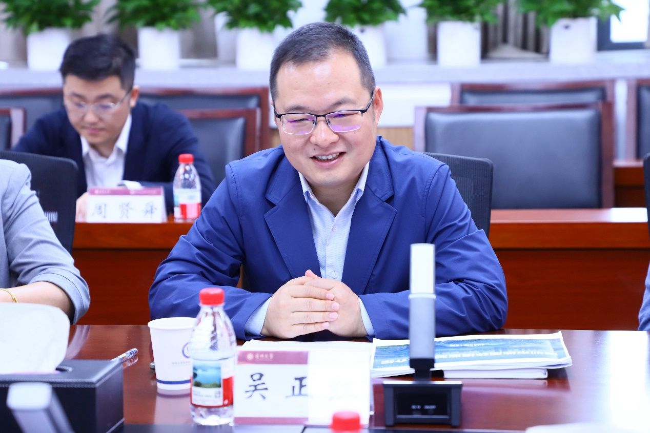 随后,深圳市地质环境监测中心主任吴正红详细介绍了中心的发展历程、职能定位、重点工作成效及未来规划。从地质灾害隐患点排查、地面沉降监测,到海洋地质环境调查,中心依托“空—天—地”一体化监测体系,持续为城市安全运行提供坚实的数据支撑。吴正红指出,随着深圳城市化进程加快,地质安全保障面临更高要求,迫切需要高校科研力量在复杂场景建模、智能预警算法等方面实现突破,并期待与深大团队进一步深化合作。