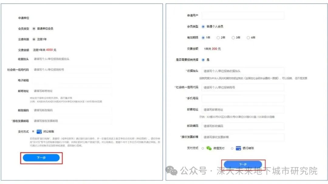 3、阅读学会会员与会费管理办法,其中会费标准为单位会员4000元/年、普通个人会员200元/年、学生会员不收取会费,阅读完毕后勾选同意选项,点击“下一步”,进入会员信息填写。