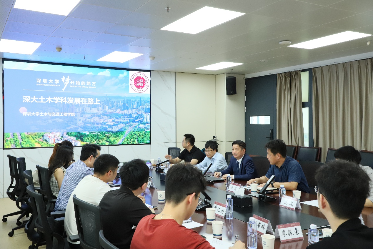 陈湘生院士对杨晶磊院长一行的到访表示热烈欢迎,并详细介绍了深圳大学的办学规模、学科布局、人才队伍及科研平台建设情况。我院围绕地下空间智能建造、绿色低碳材料、城市韧性防灾、人工智能赋能土木工程等方向,形成了多学科交叉的研究团队,承担了多项国家重大科研项目,取得了一系列具有影响力的成果。