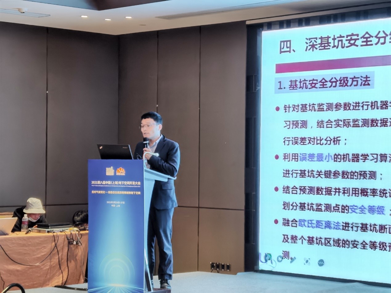 上海市住建委刘千伟总工程师、同济大学童小华副校长和大会主席陈湘生院士在大会开幕式上致辞。国家最高科学技术奖获得者、中国工程院院士、陆军工程大学钱七虎教授和我院院长、中国工程院院士陈湘生教授,分别作了《地下空间开发利用与碳达峰和碳中和》、《地下空间建造低碳化战略与实践》为题的报告,深入阐释“碳达峰、碳中和”的国家战略与人类需求。深圳大学未来地下城市研究院胡明伟教授进行了关于“地下交通枢纽客流组织和集散的建模”的报告,洪成雨副教授做了关于“基于机器学习的深基坑安全评估研究”的报告。另外,深圳大学未来地下城市研究院副院长苏栋、包小华教授等12名同事参加了此次会议。