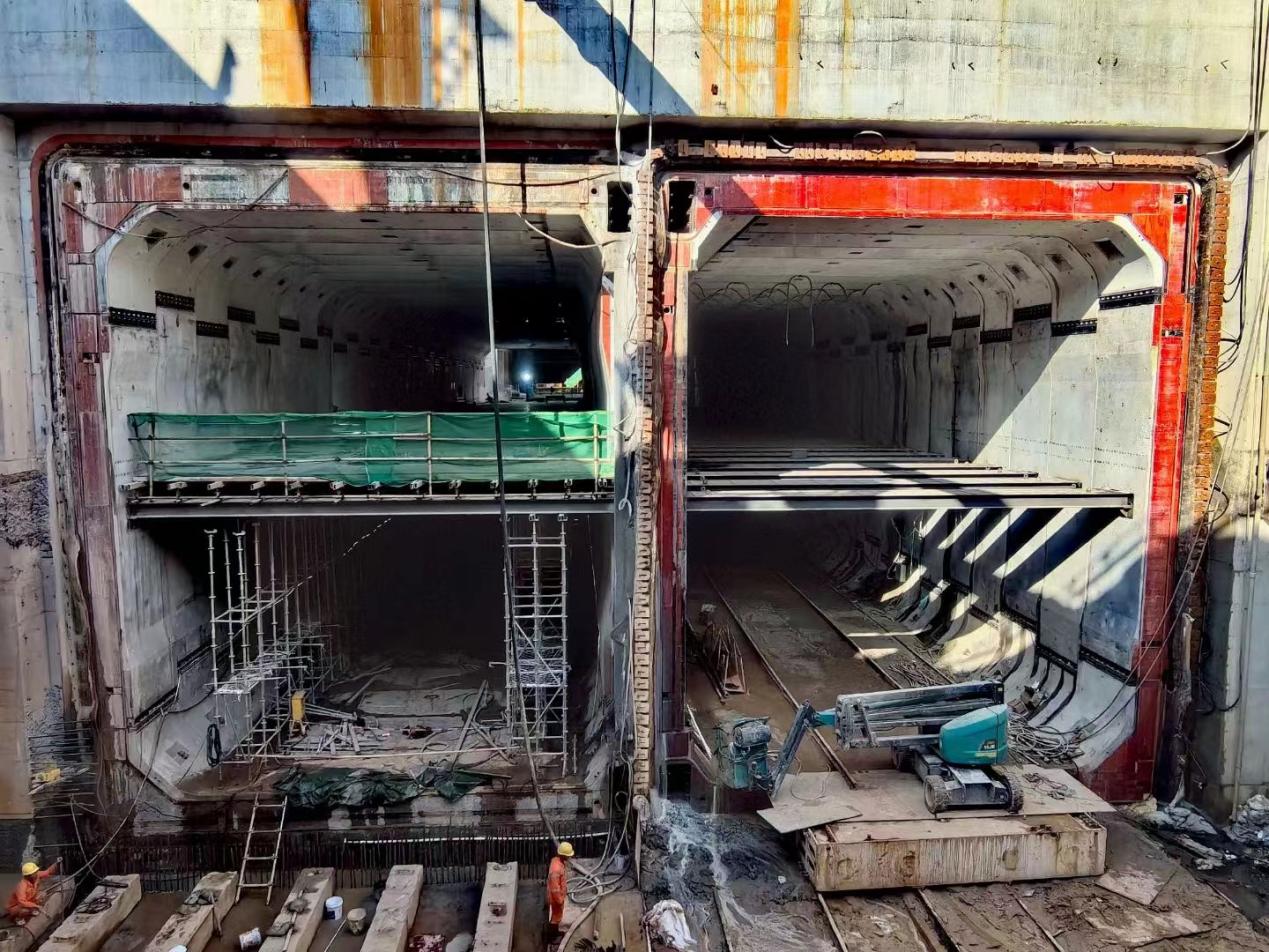 广东省重点领域研发计划“现代工程技术”重点专项“繁华城区地铁暗挖车站关键技术”项目由中国工程院院士、我院院长陈湘生担任项目负责人,深圳市地铁集团有限公司作为牵头单位,联合深圳市市政设计研究院有限公司、中电建南方建设投资有限公司、中国水利水电第十一工程局有限公司、中铁工程装备集团有限公司、铁科院(深圳)研究设计院有限公司、广州金土岩土工程技术有限公司、中国铁建重工集团股份有限公司和南京派光智慧感知信息技术有限公司等单位,旨在系统地探索地铁车站绿色高效智能化的机械化暗挖施工技术。图2为沙三站双洞顺利贯通后实拍图。