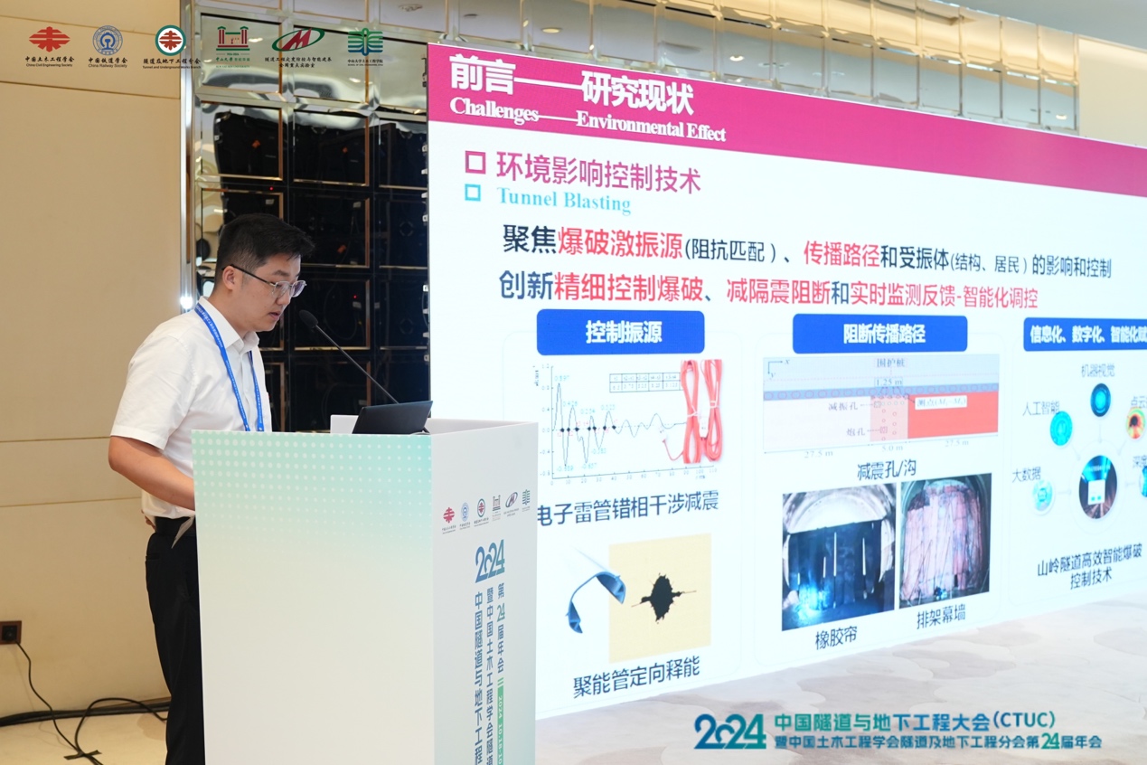 研究院的苏栋教授、包小华教授、王树英教授、付艳斌教授、韩凯航助理教授、林星涛助理教授、沈翔助理教授、邱桐助理教授、沈俊副研究员以及周贤舜副研究员分别在青年科学家专场、科技论坛中开展学术交流汇报,分享了他们在隧道与地下工程领域的最新研究成果,包括隧道工程建设中的技术与安全问题、地下工程材料的性能优化等方面,与到会专家学者们进行了深入的学术探讨和交流。