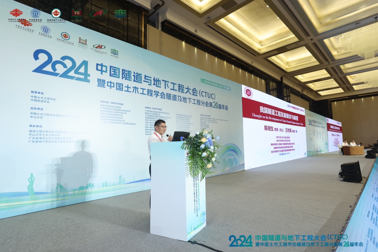2024年10月18日-21日,2024中国隧道与地下工程大会(CTUC)暨中国土木工程学会隧道及地下工程分会第24届年会在广东珠海举行。本次大会主题是“双碳目标与一带一路背景下中国隧道与地下工程建设”,由中国土木工程学会隧道及地下工程分会和中山大学主办,来自全国高等院校、研究院所、企业等相关领域的专家学者共约1500人出席了大会,展示了国内隧道及地下工程领域最新的科技前沿和应用成果。