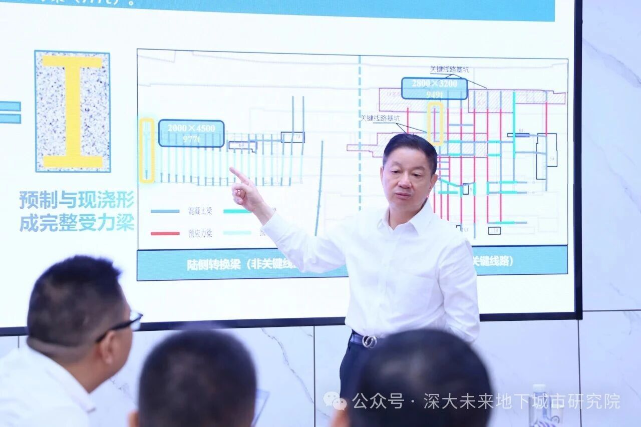 陈湘生院士对中建三局集团(深圳)有限公司的到来表示热烈欢迎,针对项目的研究情况,在穿透车站结构桩基施工、变形预警值设定、车站水流控制施工工艺等关键技术方面进行分析并提出具体建议,期待今后双方能进一步加强科研协作,以开拓创新思维,深化技术合作,共谋相关技术的创新发展路径。