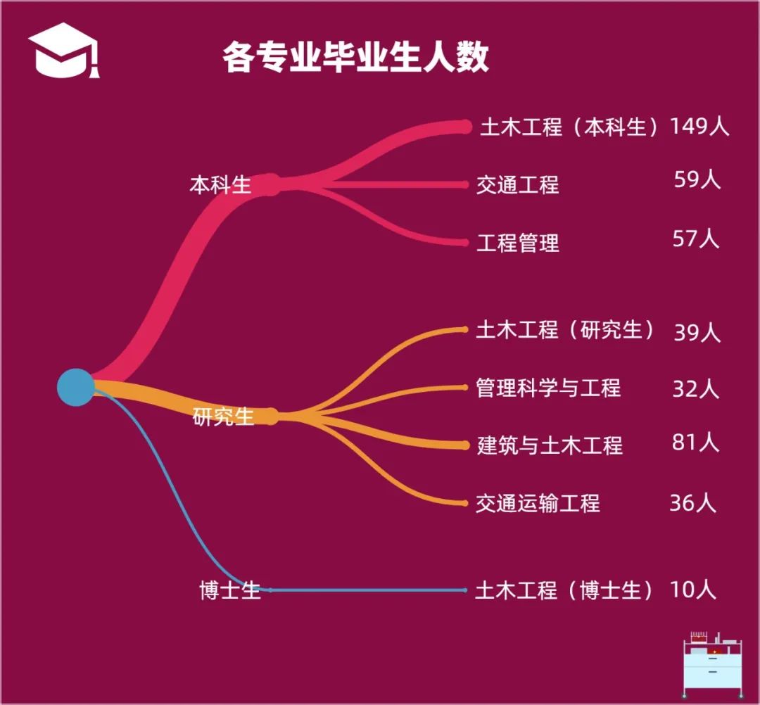 本科毕业生一半以上的人数为土木工程专业,交通工程专业与工程管理专业的本科毕业人数相近。