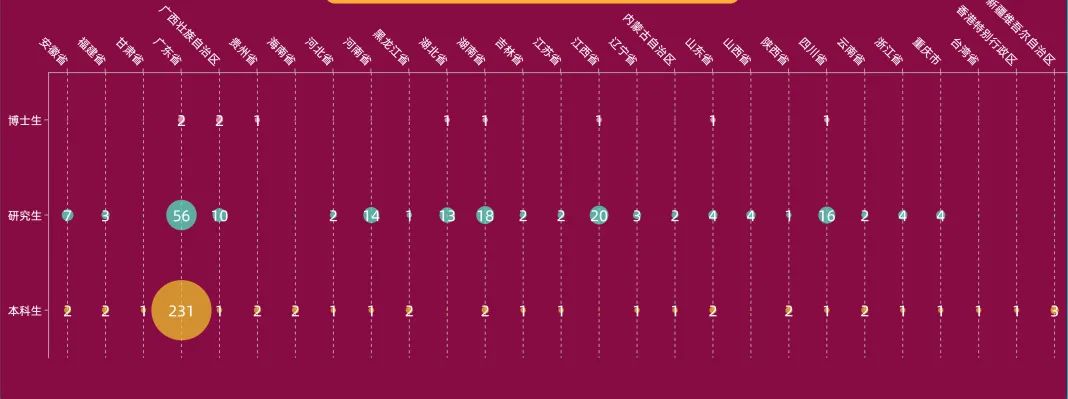 在硕士毕业生中,同样也是来自广东省的学生人数最多,来自江西省的学生人数次之。