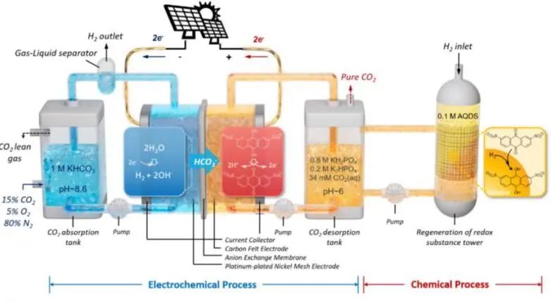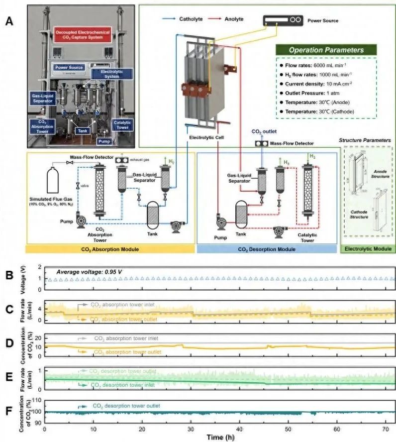 图3:CO2的电化学碳捕集原理样机与性能验证