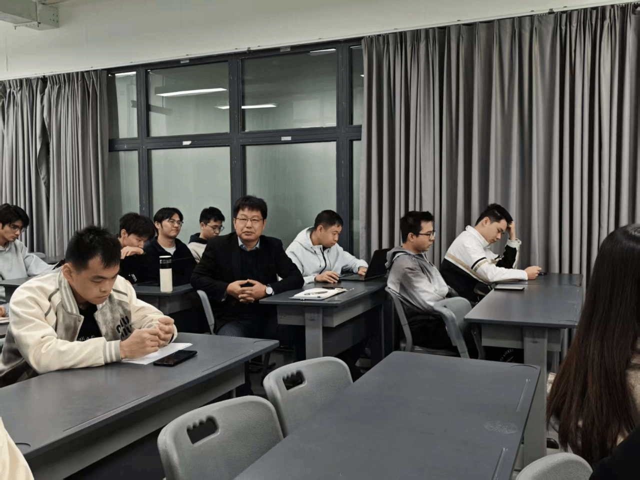 此外,丁志坤副院长对2023级工程管理1班学生的职业规划给出建议。他强调,职业选择要立足个人兴趣与能力,切勿盲目跟风;提醒同学们理性权衡考研的机会成本,明确专业冷热并非发展的决定因素,自身能力才是立足职场的核心竞争力;同时鼓励大家走进行业一线实习,在实践中探索岗位适配性,主动与老师、同学及家人沟通交流,以科学规划减少成长路上的试错成本。