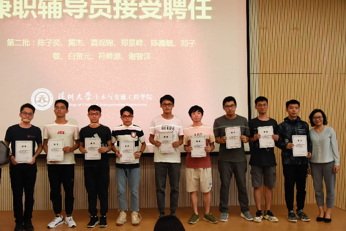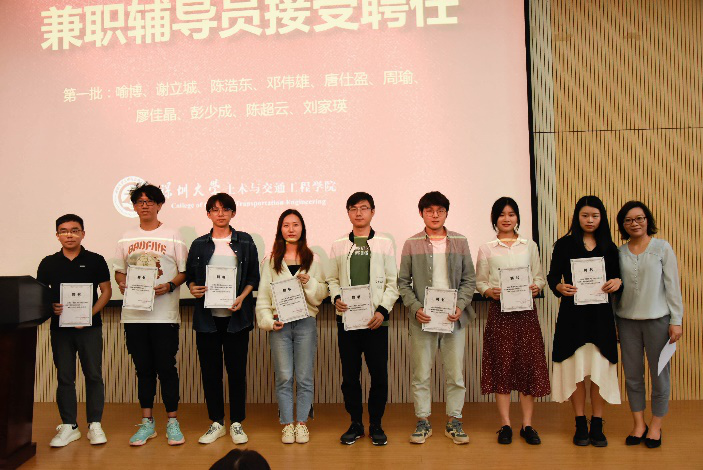 兼职辅导员团队是一支由我院博士研究生、硕士研究生与本科生组成的服务型学生团队,从高年级本科生及研究生中选拔,政治素养及心理素质过硬,具备一定的组织管理能力、综合分析能力、沟通协调能力及文字表达能力。这支队伍将以分组协作完成专项任务方式辅助学院学工辅导员团队开展思政工作。本次受聘仪式,共计19名同学获颁发兼职辅导员聘书。