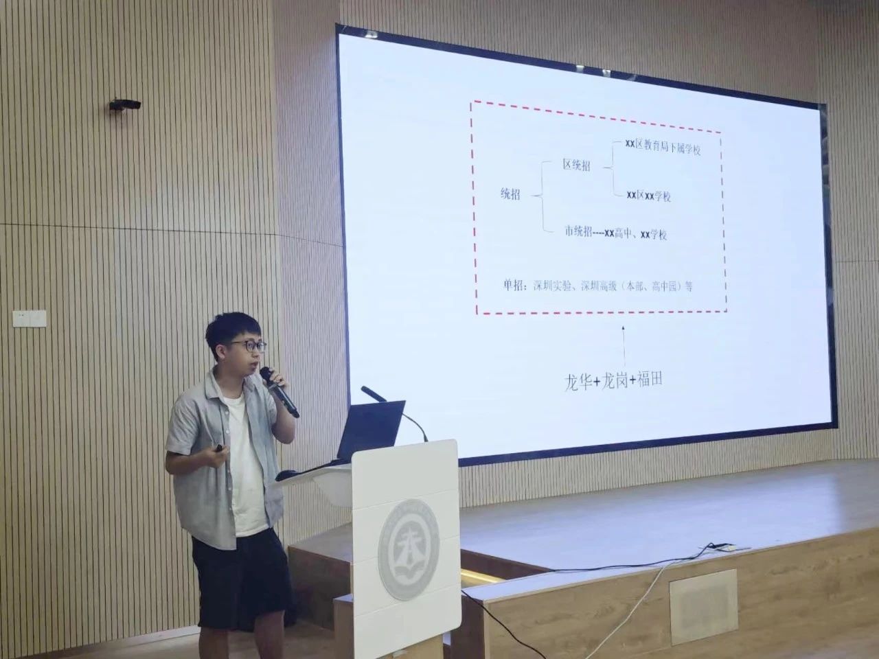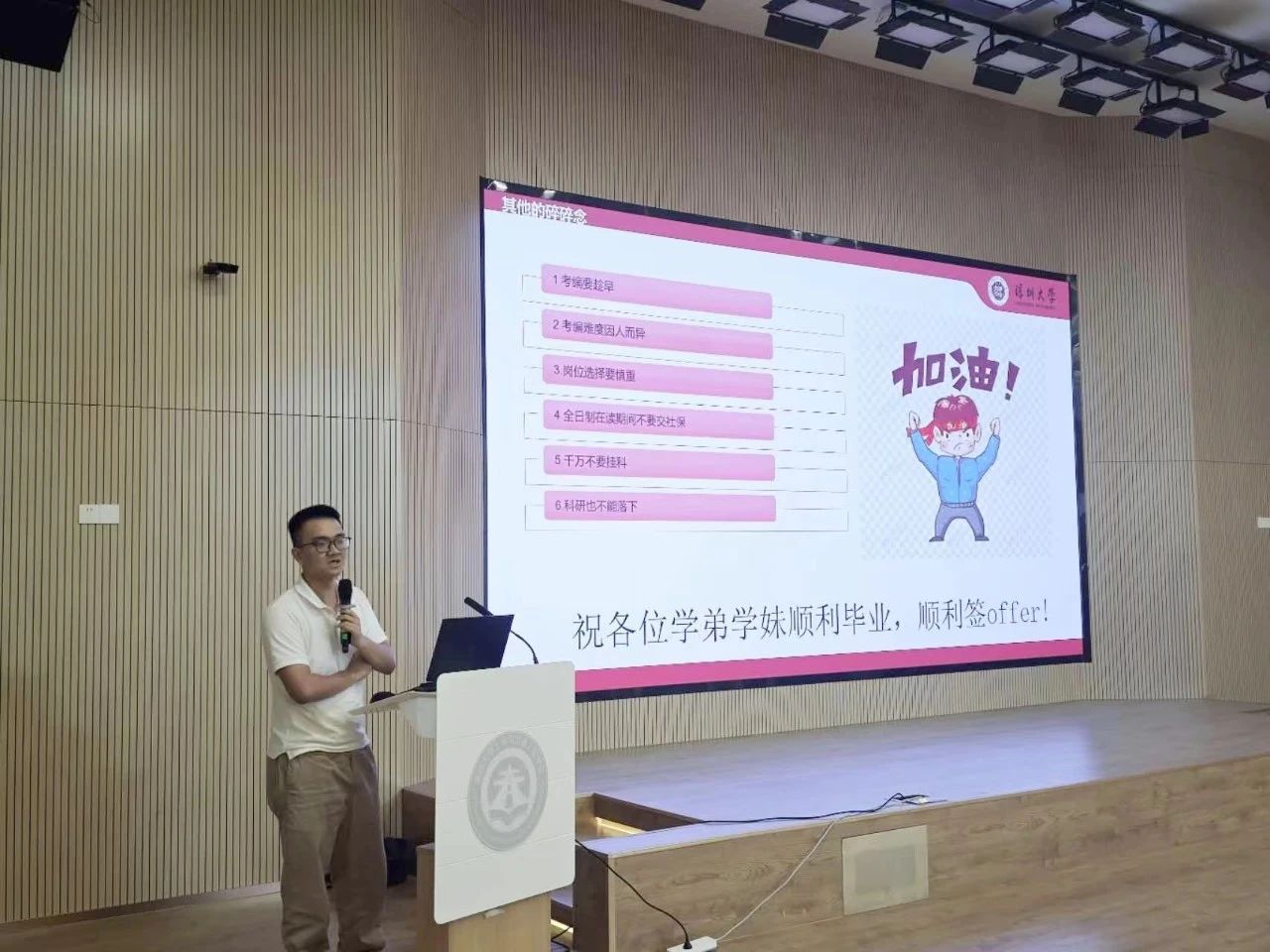 张潮彬同学主要从考编形势、如何准备考试及龙华教师编制的招聘信息三个方面与同学们深入交流。