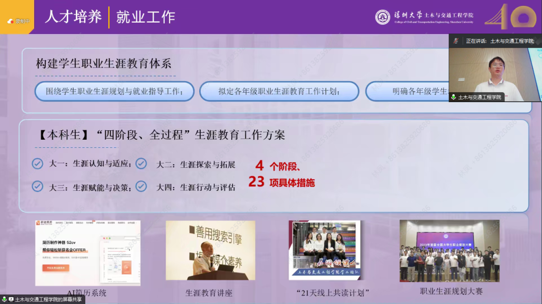 王老师还介绍了学院校友会的基本情况。学院校友会始终秉持着反哺母院助力育人的理念,从2014年成立至今,共设立了8项专项基金,资助了1947位同学,资助金额已经超过了1000万元,助力全院学生的长期发展,这是令全体深大土交人引以为荣的专享待遇。