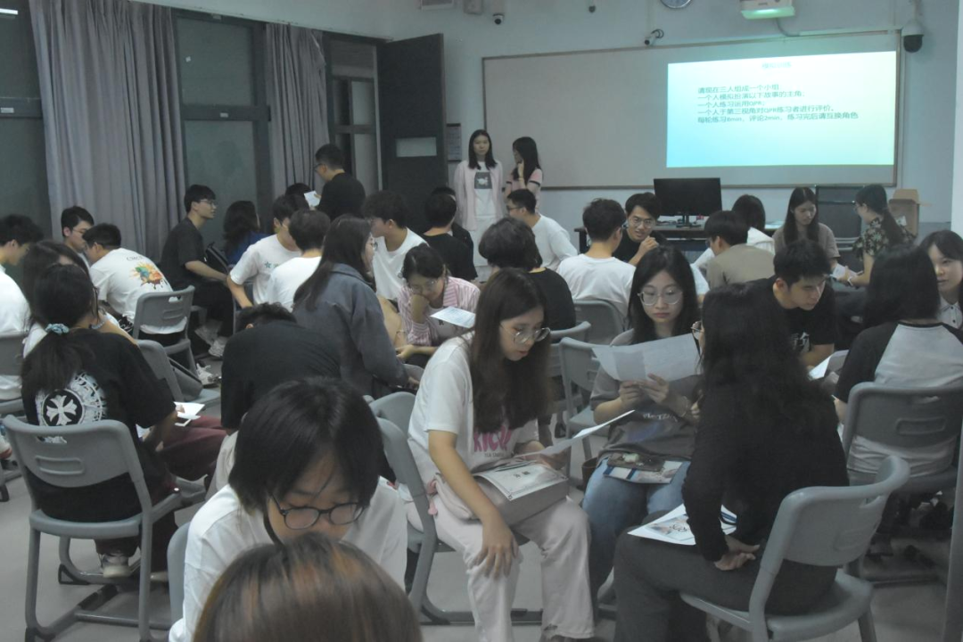 培训进入实践环节时,黎医生邀请了一位同学与他合作现场进行QPR实操演练,然后他将参加培训的同学们分为三人小组进行实践、讨论与评估,在实践过程中,他耐心地回答了同学们的疑问,同学们积极参与研讨和实践。