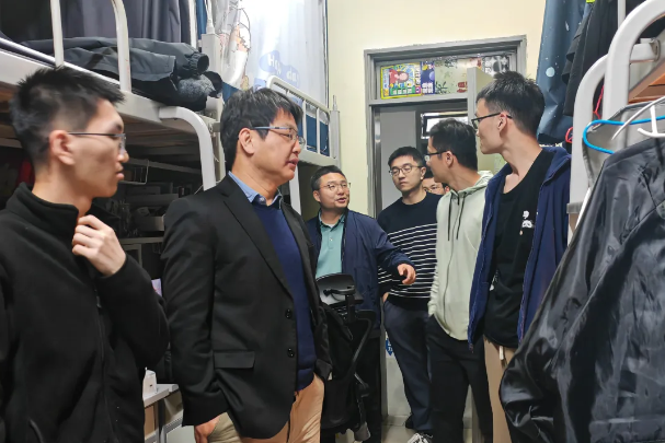 副院长杨磊、本科生班主任蒋卫平、沈翔、王俊、赵德博、熊昊、吴泽洲、辅导员叶栋炜、潘文龙及兼职辅导员一行走访了2022级、2023级本科生宿舍。杨磊副院长详细询问同学们的选课进度与上学期课程学习情况,针对具体科目帮助同学们剖析知识盲区,他督促大家夯实专业基础,积极参加学科竞赛。