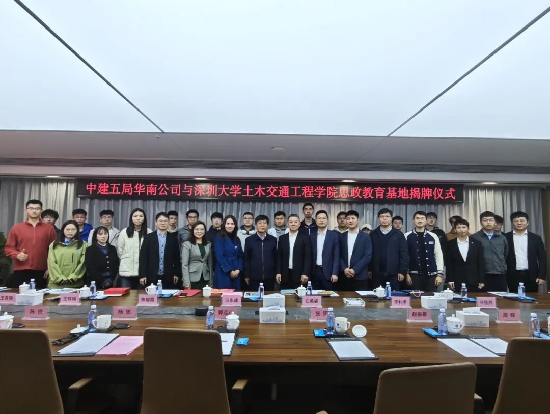 为进一步促进校企协同育人,深圳大学土木与交通工程学院与中建五局华南公司现场签订“校外思政教育基地”协议,并完成揭牌仪式。签约仪式上,双方分别介绍学校情况和企业情况,并共同观看宣传片。土木与交通工程学院2018届、2019届、2024届3位校友作为代表分享了自己在中建五局华南公司的职业生涯成长感受。