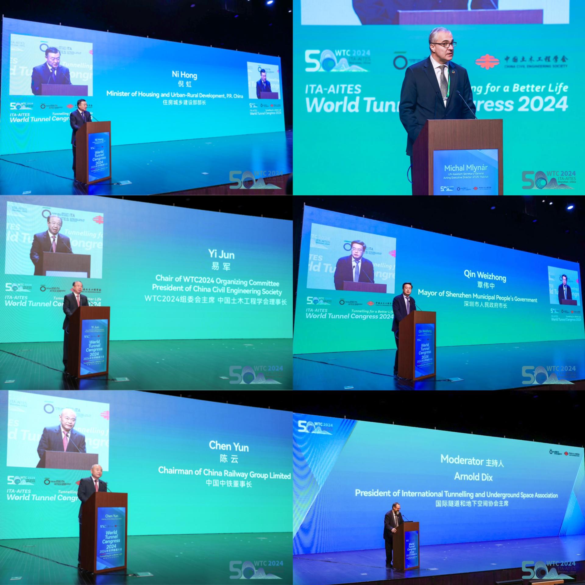 The conference invited Ni Hong, Minister of Housing and Urban Rural Development, Michal Mlyn á r, Assistant Secretary General of the United Nations, Yi Jun, Chairman of the Chinese Civil Engineering Society and WTC2024 Organizing Committee, Qin Weizhong, Mayor of Shenzhen, Chen Yun, Chairman of China Railway Corporation, and Arnold Edward Dix, current Chairman of the International Tunnel and Underground Space Association, to attend the opening ceremony and deliver speeches. Wang Hui, Deputy Minister of Housing and Urban Rural Development, and Zhang Liwei, Deputy Mayor of Shenzhen, attended the conference.