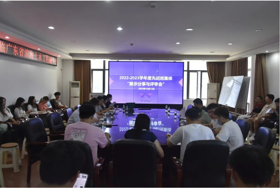 On 13th October, the College of Civil and Transportation Engineering held the Advanced Class Collective Display Sharing and Selection Meeting for the Academic Year 2022-2023 in C501, Zhi Gong Building. Participants in the selection meeting include: Chen Bixia, Secretary of the Party Vice Committee of the College, Zhou Haijun, Head of the Department of Civil Engineering, Wu Huanyu, Teacher Representative of the Department of Engineering Management Science, Zhang Bochen, Representative of the Department of Intelligent Transportation, all the counsellors of the Office of Academic and Labour Affairs, the representatives of the participating class groups as well as the representatives of the class committees of all undergraduate class groups.