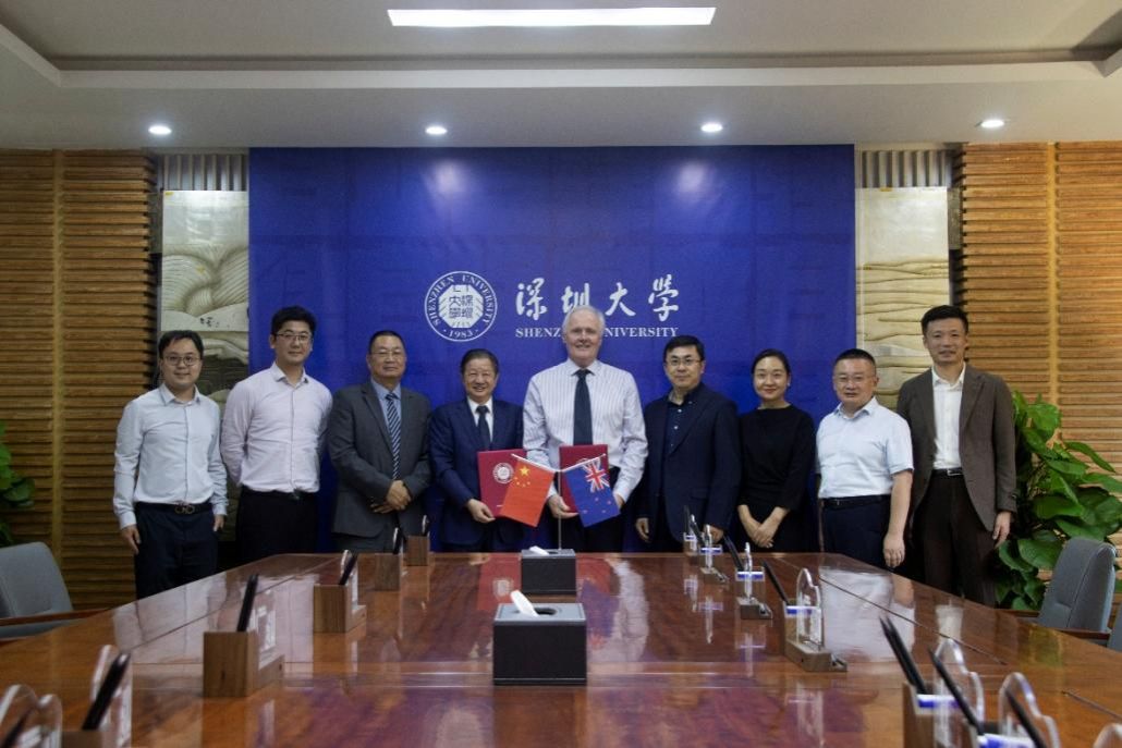Mr. Chao Naipeng, Vice President of SZU, met with the guests and witnessed the signing ceremony, discussing the signing of the contract as an opportunity to promote in-depth cooperation between the two universities in the areas of talent cultivation, scientific research and achievement transformation. Representatives from the University of Waikato's China Co-operative Education Business Development Program and representatives from SZU's Department of International Exchange and Cooperation, School of Chemical and Environmental Engineering, and School of Artificial Intelligence participated in the meeting and witnessed the signing ceremony.