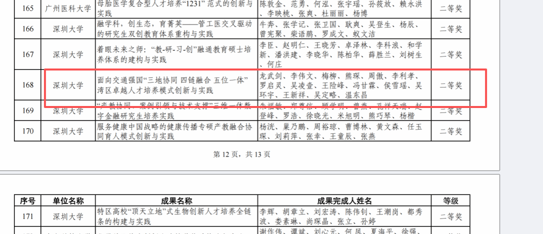 On 12 December 2025, the Department of Education of Guangdong Province formally announced the recipients of the Provincial Outstanding Teaching Achievement Awards (Higher Education – Postgraduate Category). The teaching achievement entitled Innovation and Practice of the Bay Area Outstanding Talent Cultivation Model: "Three-Region Synergy, Four-Chain Integration, Five-in-One Approach" for Building a Strong Nation in Transportation, jointly submitted by Shenzhen University in collaboration with the Guangdong Academy of Building Research, Poly Changda Engineering Co., Ltd., China Communications Road & Bridge Construction Co., Ltd., and Harbin Institute of Technology (Shenzhen), was awarded the Second Prize. This accolade signifies significant progress in our institute's cultivation of innovative postgraduate talent.