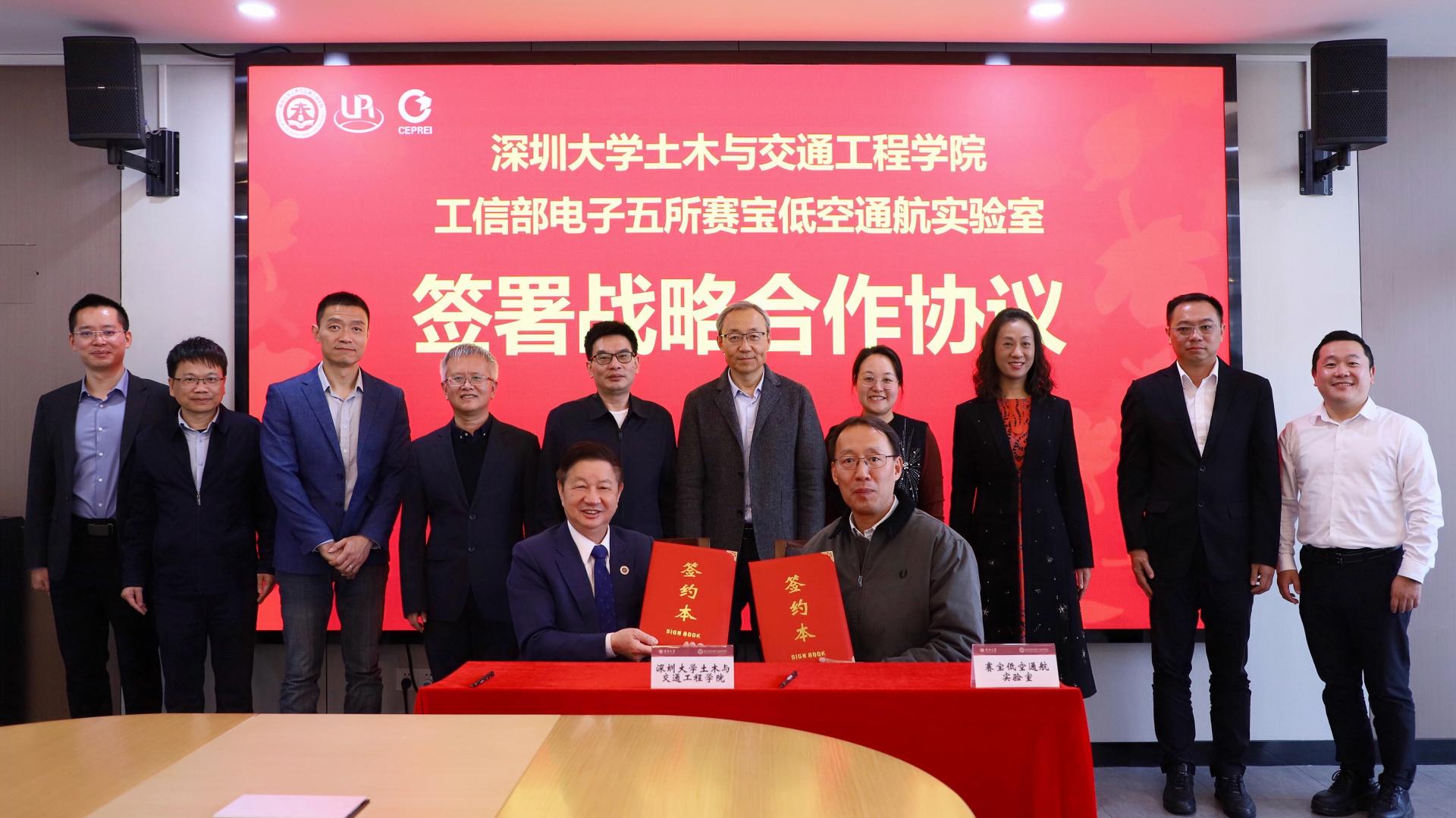 On the afternoon of December 31, 2024, the preparatory meeting for the establishment of the Shenzhen Low altitude Safety Assessment Engineering Technology Research Center and the signing ceremony of the strategic cooperation agreement between the School of Civil and Transportation Engineering of Shenzhen University and the Cyber Low altitude Navigation Laboratory of the Electronic Fifth Institute of the Ministry of Industry and Information Technology were successfully held in Conference Room 905, Zhili Building, Yuehai Campus (South District) of Shenzhen University.