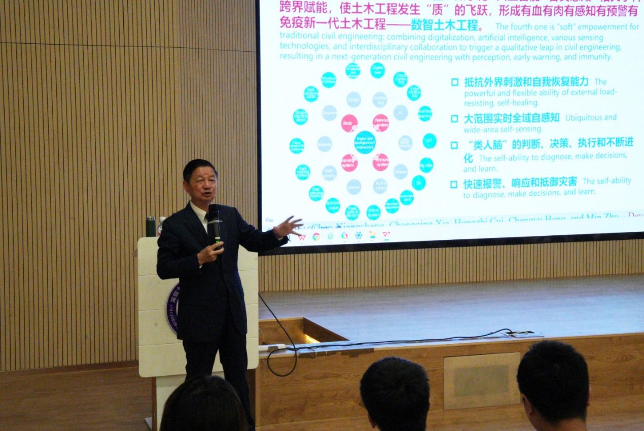 On the evening of October 16, 2025, the inaugural lecture of the “Introduction to Civil Engineering” course was grandly delivered in Lecture Hall A431 of Zhi Gong Building at Shenzhen University's School of Civil and Transportation Engineering. The lecture was presented by Professor Chen Xiangsheng, Dean of the School and Academician of the Chinese Academy of Engineering. Over 200 faculty members and students attended, including Vice Dean Yang Lei, representatives of young faculty, and freshmen from the Class of 2025. Vice Dean Yang Lei presided over the lecture.