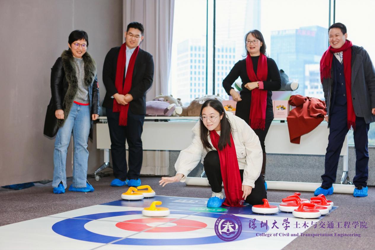 After the meeting, all the participating teachers and alumni moved to the Alumni Square activity room for an interactive curling game. Through the curling game, the teachers cooperated with each other and cooperated with each other, which jointly demonstrated the spirit of unity and struggle and innovation of the College of Civil and Transportation Engineering.