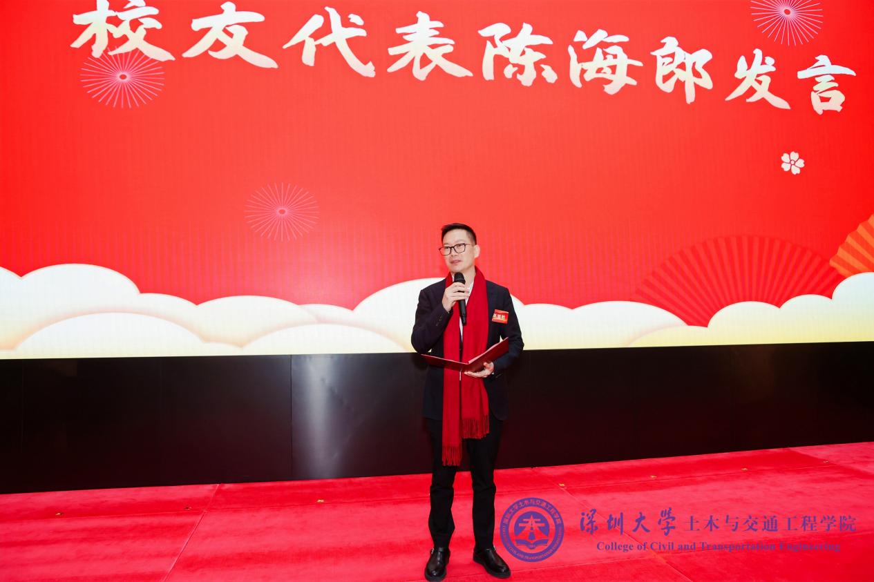 Chen Hailang, a Class of 87 alumnus and vice chairman of the Alumni Association of the College of Civil and Transportation Engineering, spoke at the dinner as an alumni representative. He said that in recent years, the college has made remarkable achievements in scientific research, personnel training and other aspects, and as an alumnus, he is deeply proud and proud. In the future, the alumni will also work hard together with all the teachers and students of the college, share hardships and share glory.