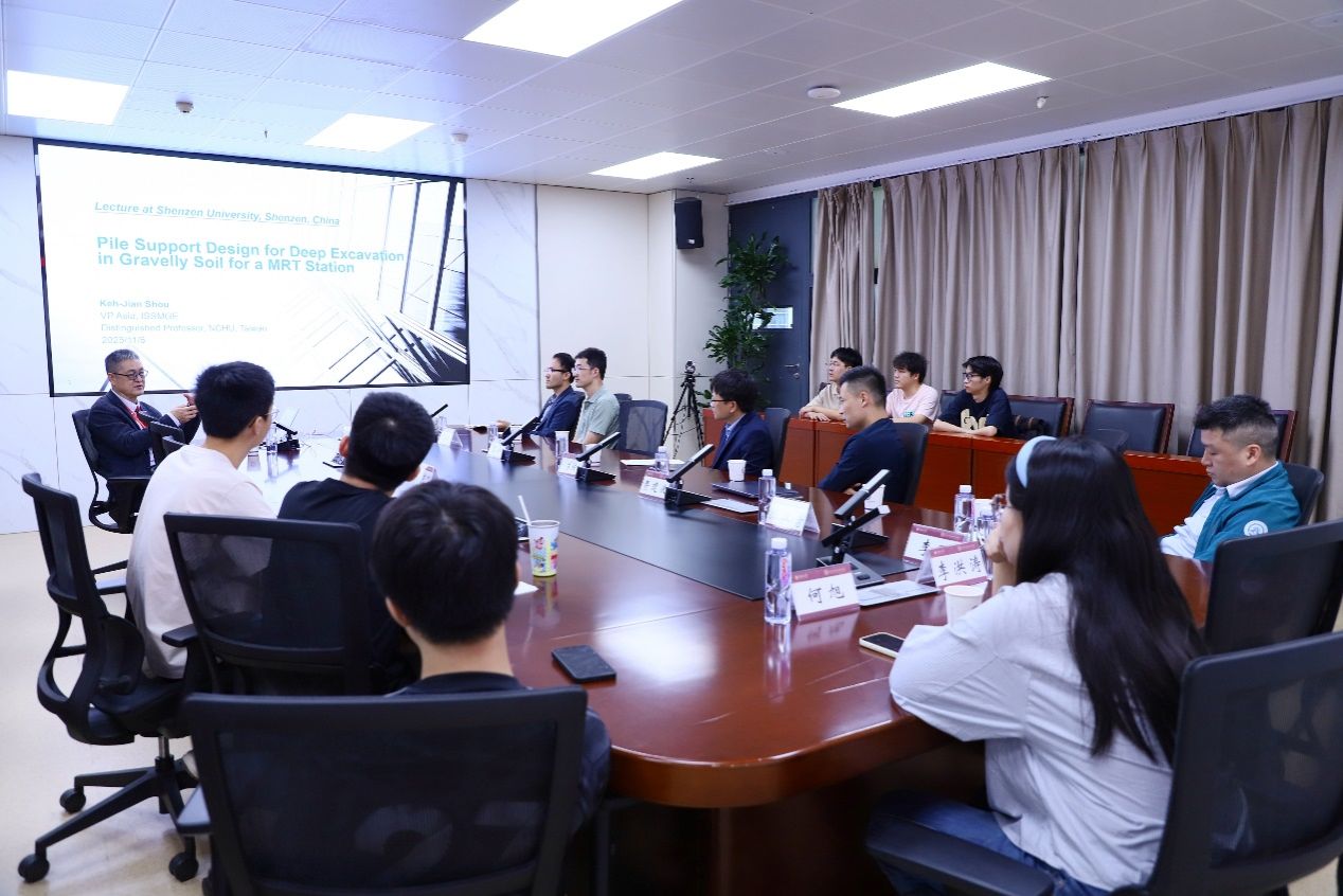 In the afternoon of November 6, 2025, Prof. Shou Kejian from Taiwan Chung Hsing University, President of the International Society for Trenchless Technology, was invited to visit our institute to give a special academic exchange in Room 1007, Zhili Building, Yuehai Campus (South). The meeting was hosted by Prof. Su Dong, Vice President of the Institute, and attended by Prof. Fei Jianbo, Engineer Li Qiang, Assistant Prof. Peng Yuansheng, Assistant Prof. Zhu Min, and other related faculty members, post-doctoral, Ph.D., and master's degree students.