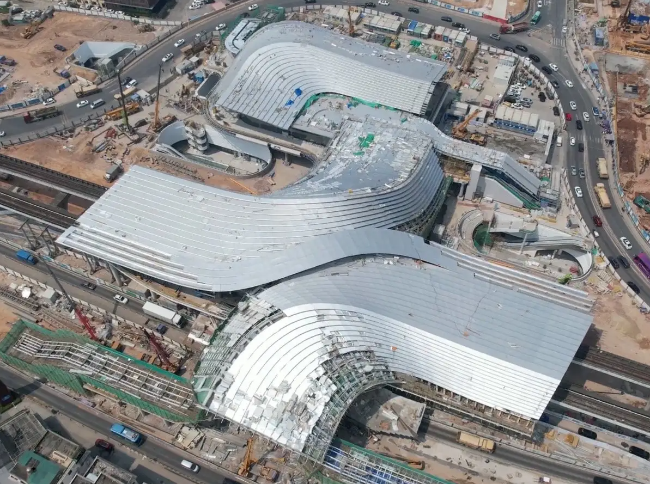 The spatial truss steel structure system used for the roof of the hub is complex in terms of stresses,with high precision in processing and installation, and challenging to construct. Based on the design and construction plan of the large-span steel roof, the team optimised the structural system and other key parameters affecting the structural performance, and analysed the safety of protective equipment, lifting equipment, transport equipment and their supporting structures during construction to enhance the technical advancement, economy and safety of the project from design to construction.