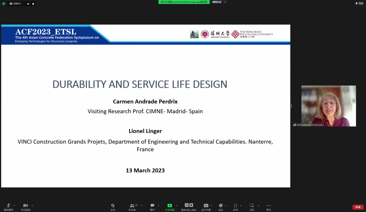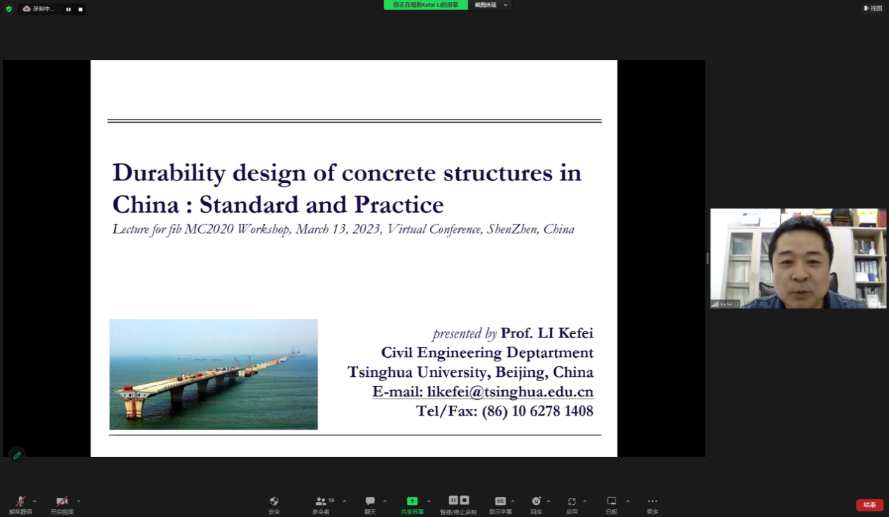 The conference also included a half-day full on-line workshop, held in the afternoon of March 13, 2023. It is jointly organized by the Asian Concrete Federation (ACF) - Shenzhen University - Hong Kong Polytechnic University and the International Federation of Structural Concrete (fib), and features seven renowned academics from home and abroad as lecturers who present new concepts and practices in concrete durability design from different perspectives.