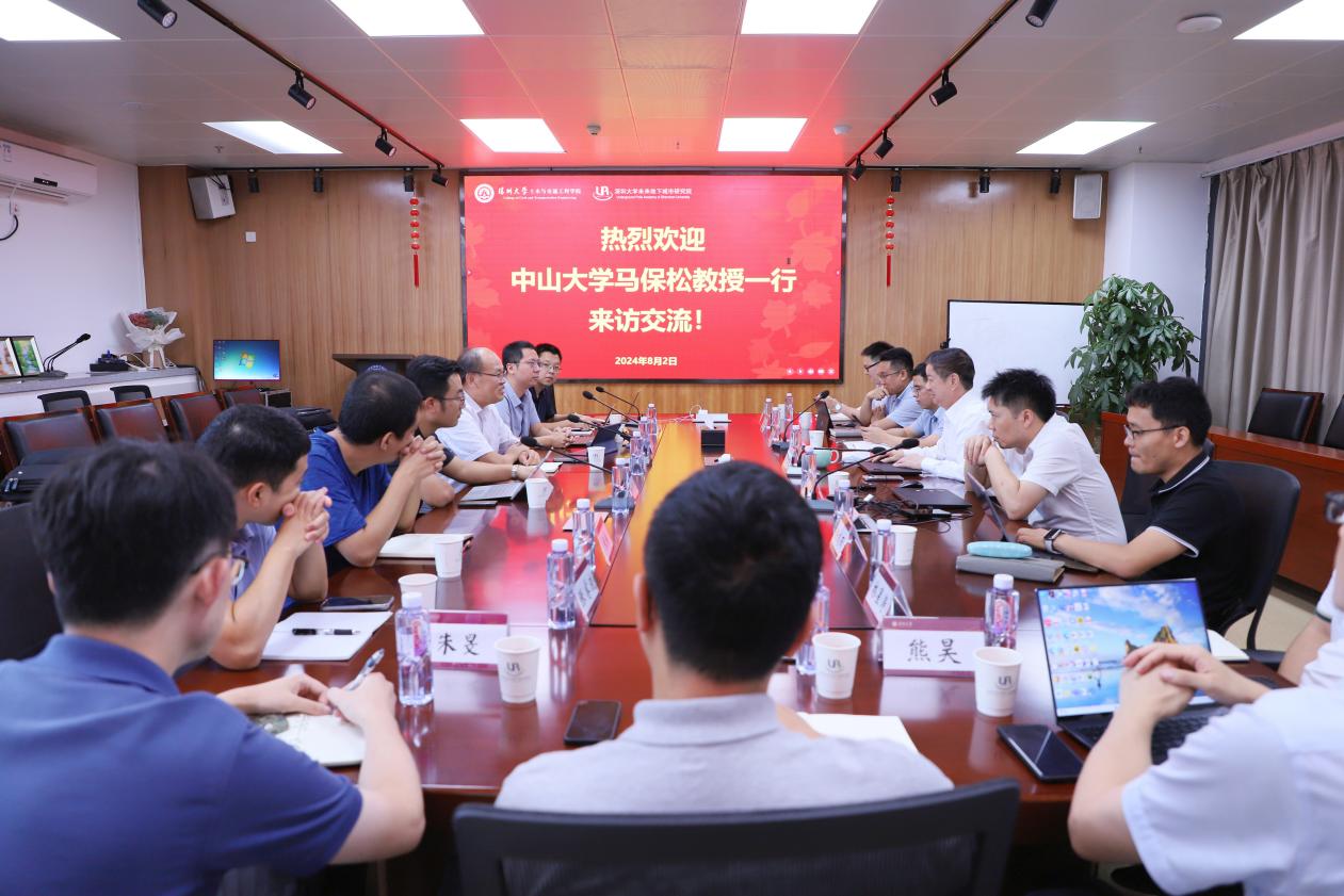 On the afternoon of August 2, 2024, Professor Ma Baosong, Professor Lin Peiyuan, and Associate Professor Huang Sheng from Sun Yat sen University visited our institution for exchange and discussion. Academician Chen Xiangsheng, Dean of our institute and the Future Underground City Research Institute, Professor Wang Shuying, Vice Dean of the institute, Professor Fu Yanbin, Chief Engineer, Associate Professor Hong Chengyu, Assistant Dean, and relevant professional teachers met with guests and held a discussion in Conference Room 1007, Zhili Building, Yuehai Campus (South District).