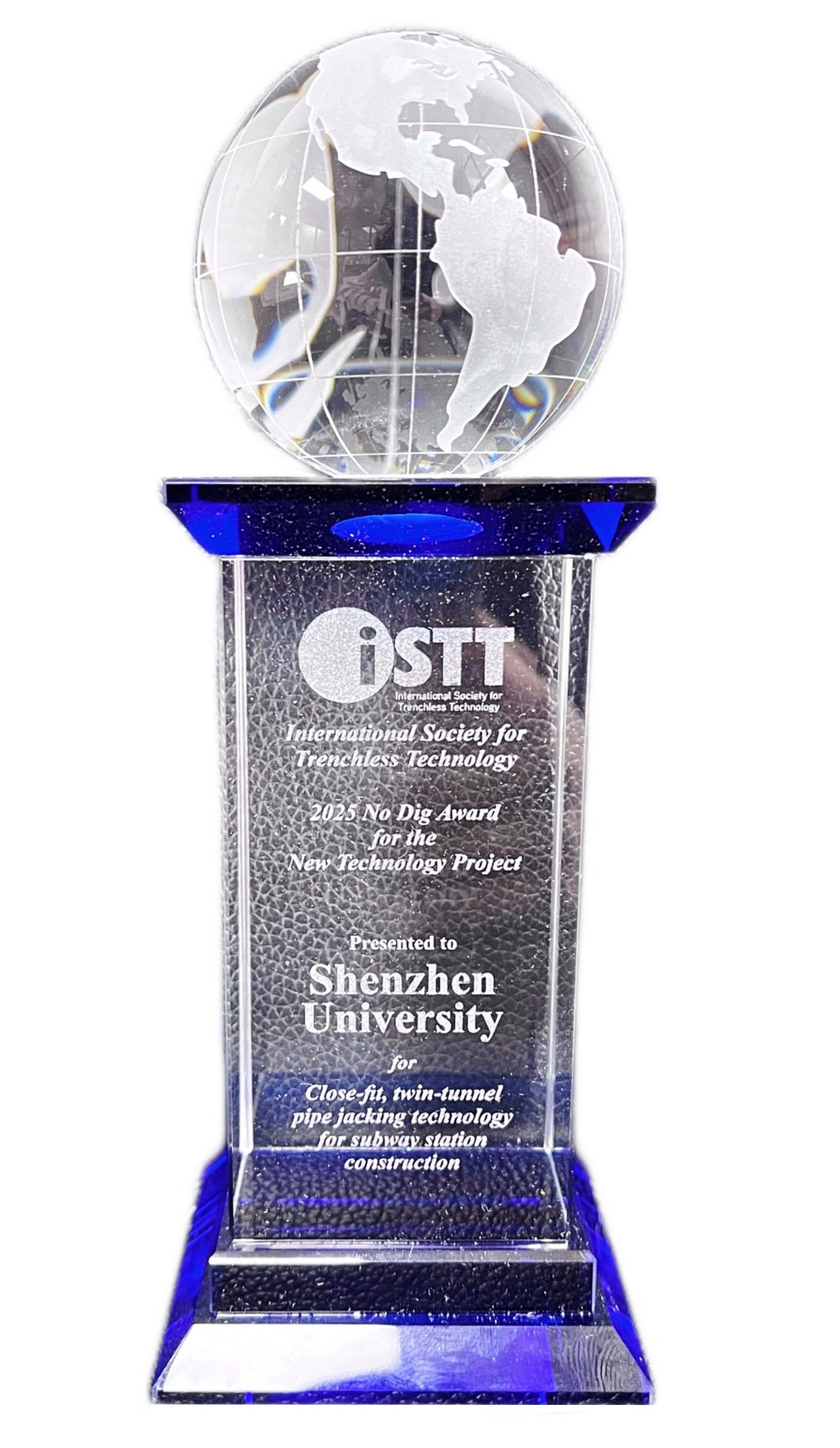 Recently, the International Society for Trenchless Technology (ISTT) announced and awarded the 2025 ISTT No-Dig Award Winners, and the “Close-fit, twin tunnel pipe jacking technology for subway station construction” (Close-fit, twin tunnel pipe jacking technology for subway station construction), led by academician Chen Xiangsheng, president of the Academy, won the Innovative Technology Award. The “Close-fit twin tunnel pipe jacking technology for subway station construction” (Close-fit , twin tunnel pipe jacking technology for subway station construction), led by President Chen Xiangsheng of our academy, was honored with the No-Dig Award. This is another honor after this technology was selected as one of the top ten scientific and technological advances of Shenzhen University in 2023 and China Non-excavation Outstanding Technology Award in 2024.