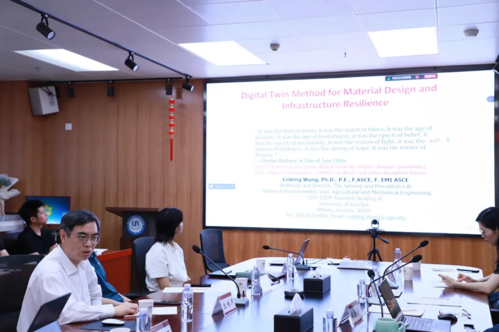 On June 3, 2024, Professor Wang Linbing from the University of Georgia visited our institution for an academic exchange meeting. Academician Chen Xiangsheng, Dean of the School of Civil Engineering and Transportation Engineering and the Institute of Future Underground Cities at Shenzhen University, met with guests and chaired the meeting. Vice Dean Professor Bao Xiaohua, Professor Wang Shuying, Chief Information Engineer Professor Hu Mingwei, Chief Engineer Professor Fu Yanbin, Professor Ye Zhoujing from Beijing University of Science and Technology, and more than 20 deep master students attended the meeting on-site. More than 20 industry scholars participated online. This exchange meeting was held in Room 1007, Zhili Building, Yuehai Campus (South District).