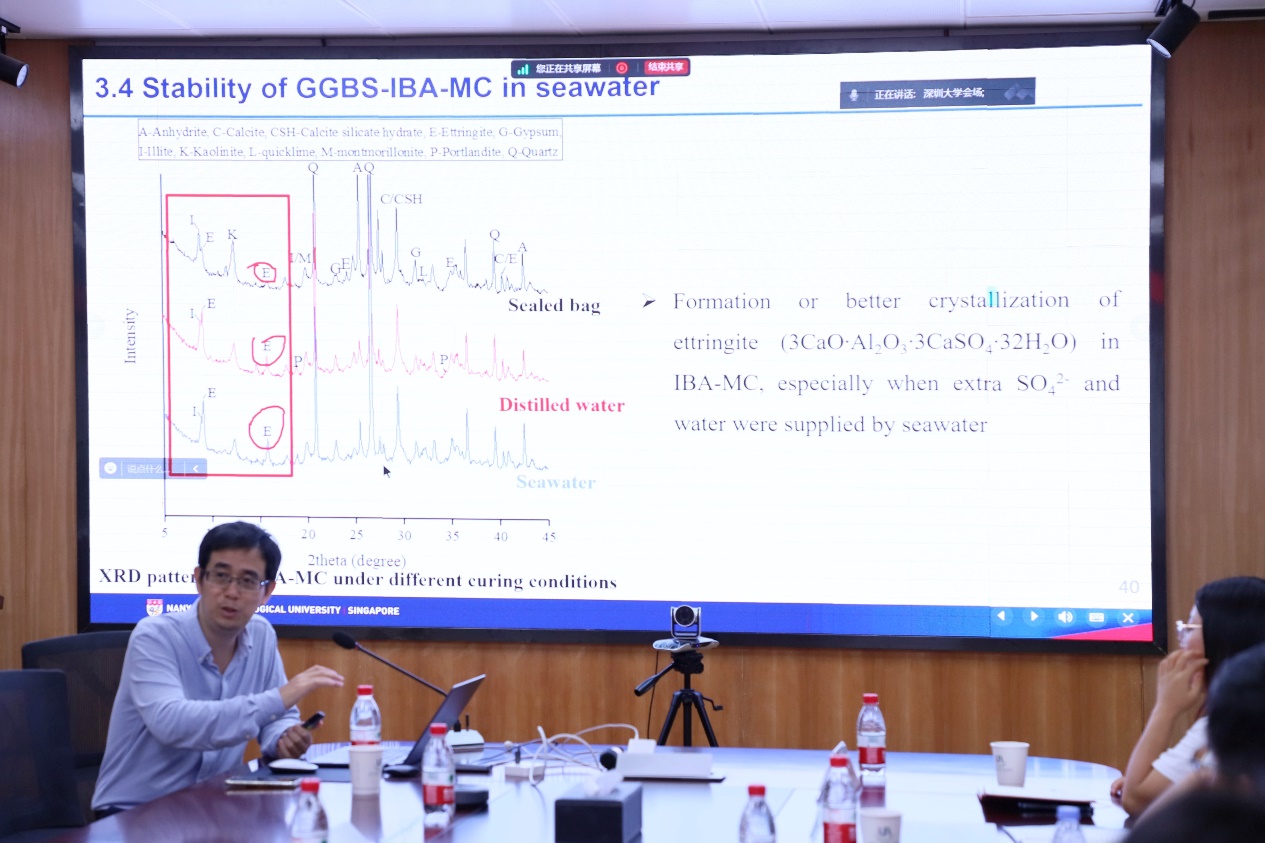 Associate Professor Yi Yaolin delivered an academic report titled 'Use of three solid wastes/by products for land reclamation and their stability/durability in seawater'.