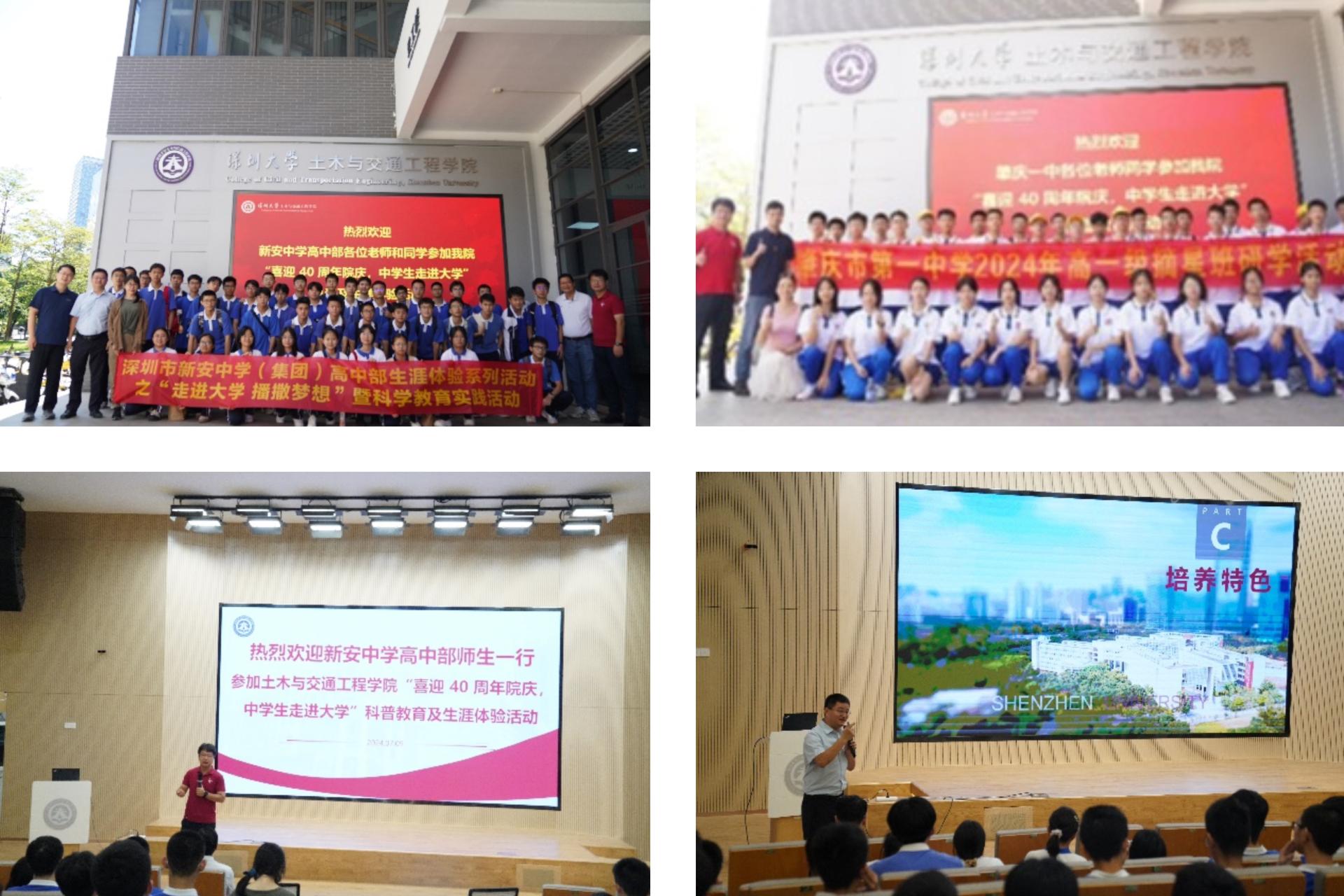 On July 9th and 11th, under the organization of the Admissions Office of Shenzhen University and our school, more than 100 teachers and students from the high school department of Shenzhen Xin'an Middle School (Group) and more than 80 teachers and students from the first level star picking class of Zhaoqing No.1 Middle School in Guangdong Province came to our school for visits and exchanges. The activities are rich and colorful, including campus lectures, lectures by renowned teachers, interactive sharing with outstanding students, laboratory visits and experiences, interviews with career figures, and a series of other rich activities. The two high schools are Guangdong Province National Demonstration High School, Guangdong Province First Class School, Guangdong Province Moral Education Demonstration School, Guangdong Province Primary and Secondary School Mental Health Education Characteristic School, Guangdong Province High School Teaching Level Evaluation Excellent School, Guangdong Province Moral Education Demonstration School and Zhaoqing Key High School, as well as Shenzhen City General High School New Curriculum and New Textbook Implementation National Demonstration Zone Demonstration School (one of the 10 schools in the city). The comprehensive educational strength ranks among the top in the city, and the students have high comprehensive quality, making it an important excellent source of students for our school.